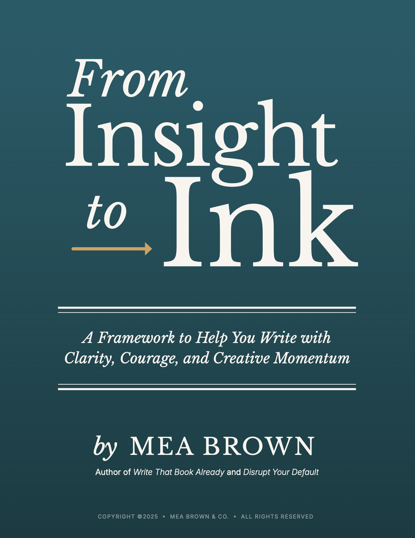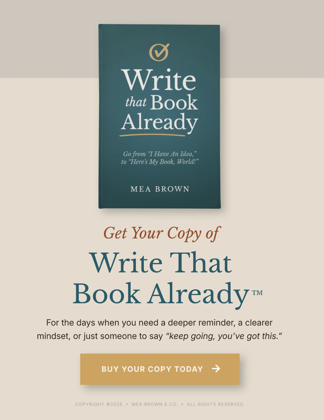 I’m Mea Brown, an author of truth-telling books that spark courage, clarity, and creation. From Disrupt Your Default to Write That Book Already, my work blends bold honesty with practical tools that move people forward into lives and work they actually want.